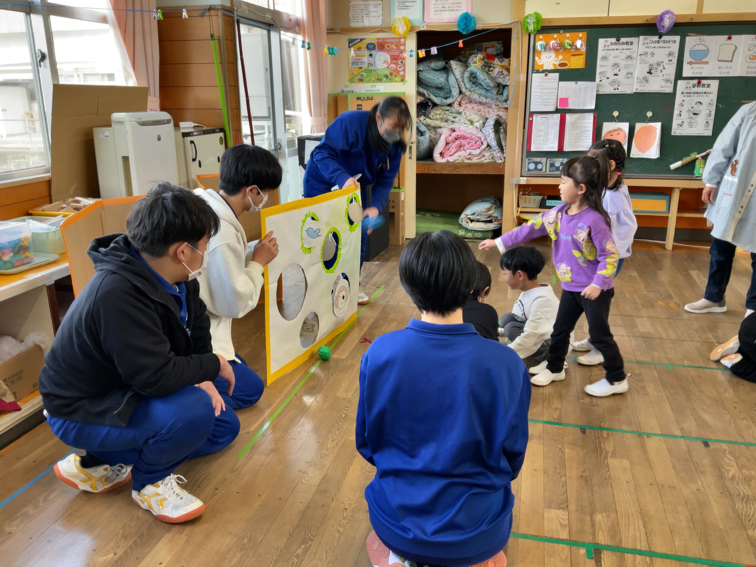 3年生の家庭科の授業の一環で、町内の保育園のご協力の下、保育園訪問を行いました。 幼児とのよりよい関わり方の工夫について学ぶ学習です。 この日のために、園児を思いながらおもちゃを作成したり、絵本を選んだりしてきました。 未満児さんに、「ぼくたちとあそんでくれるの?やったぁ!」と言われた中学生は、おもわず、にんまり^^ でも、実際に園児を目の前にすると、どう声がけをしたらよいか戸惑う中学生。 一緒に遊ぶ中でお互いに慣れ、お別れの時間には、名残惜しくなりました。 名子中央保育園様、双葉保育園様、中学生を受け入れてくださり、ありがとうございました。