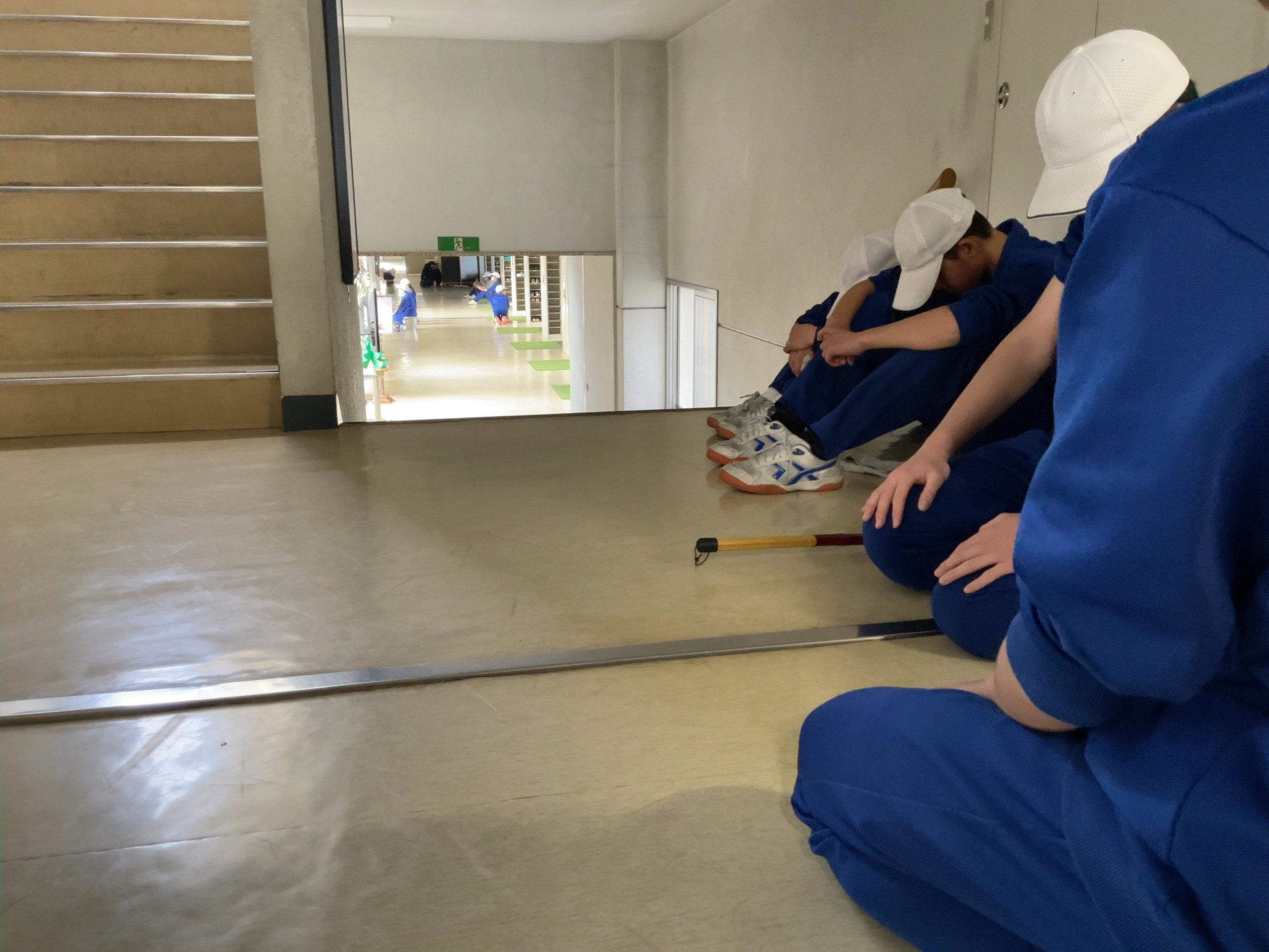 週に2回の清掃の時間がより充実した時間になるように、これまで、教室で行っていた黙想を清掃分担に移動してから行うよう試行しています。 これは、松風祭の全校討論で生徒から出されたアイディアの一つです。 黙想のチャイムが鳴るまでに清掃分担に移動します。 黙想開始まではざわざわしているものの、チャイムと共にシーン。 校長先生も、一緒に黙想します。 清掃の開始も、その後の10分間も、いい感じです。