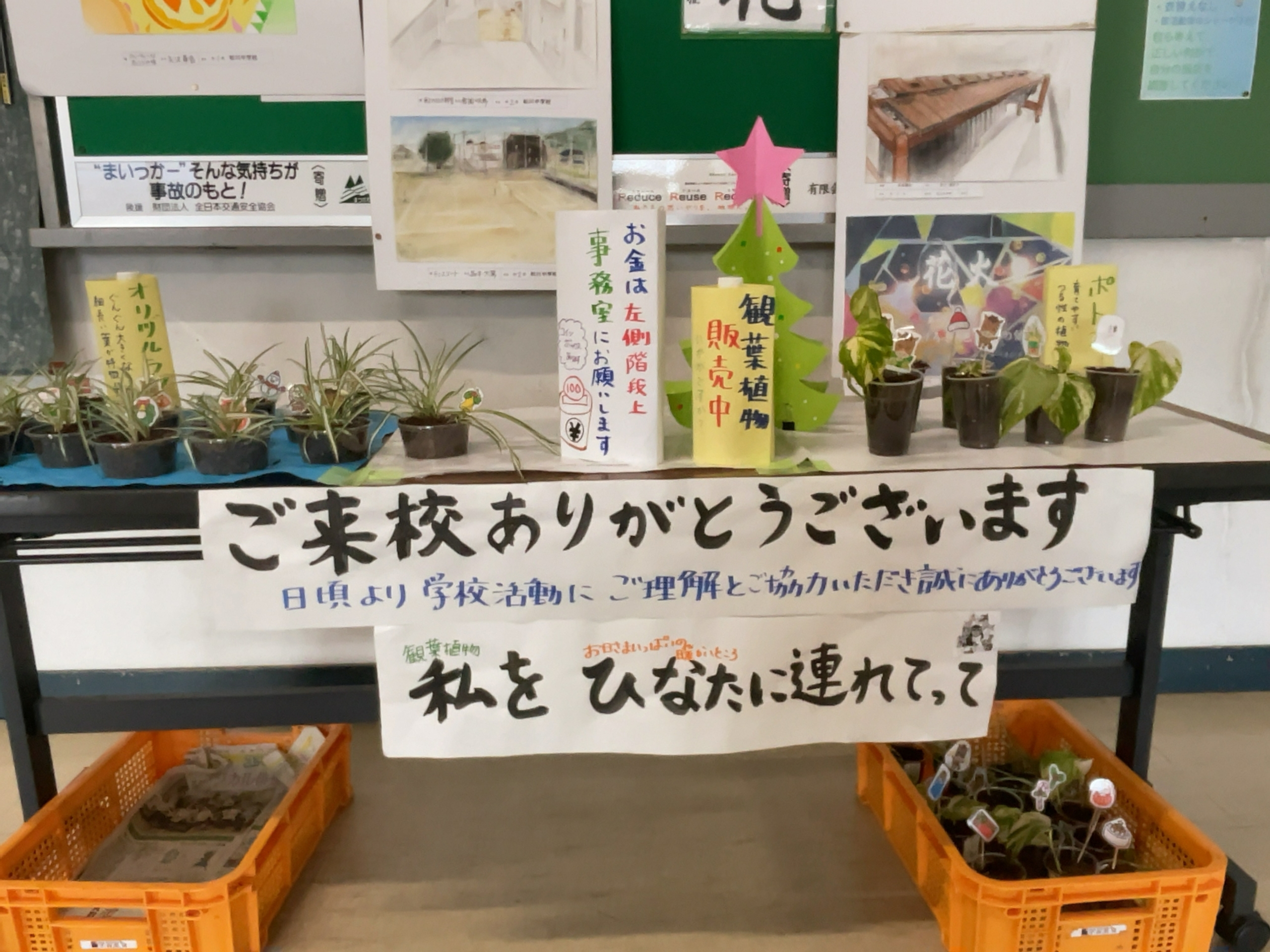 生徒昇降口で、観葉植物の販売を行っています。 これは、校内中間教室で少しずつ大きくなってきた植物たちです。 このところの寒さで、葉っぱに少し元気がないですが、しっかり根付いています。 皆さんのお部屋にお一ついかがですか?