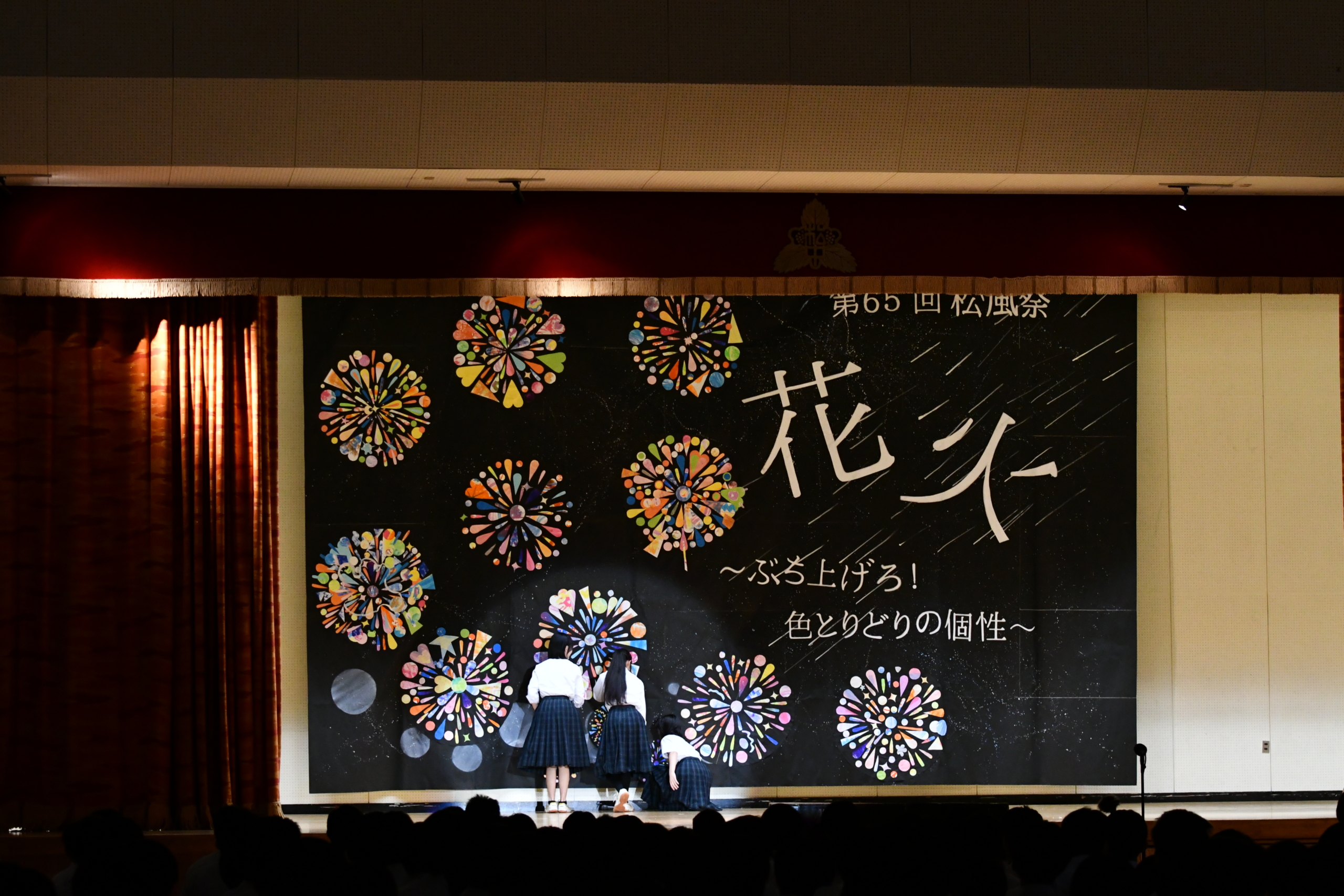 秋晴れの下、第65回文化祭が開催されました。 全校制作の「花火」をステージバックに、総合的な学習の時間、演劇部、パソコン園芸部の各活動、英語スピーチ、全校討論、吹奏楽部の発表、音楽祭等々、盛りだくさんの一日でした。 昼食の時間には、PTAの皆さんから差し入れもありました。 ありがとうございました。 本日の松風祭の様子は、9月29日(月)18:00~ チャンネルユーの「ニュースまつかわ」の中で紹介されます。 ぜひ、ご覧ください。