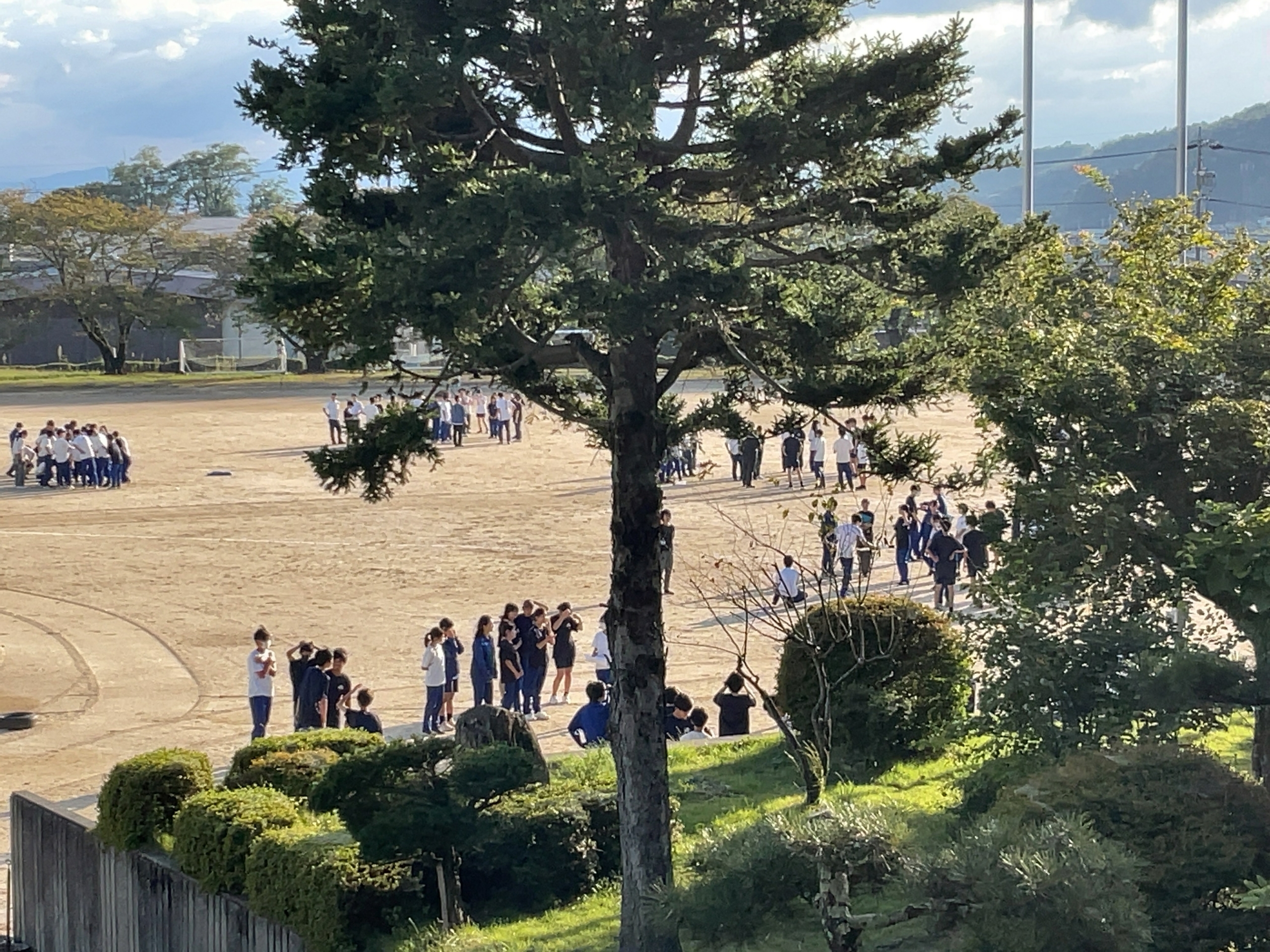 帰りの学活の時間。 校庭からたくさんの拍手が聞こえます。 何だろう?と、ベランダから顔を出すと・・・ スポーツフェステイバルに向けて、たくさんのクラスが練習で集まっていました。 さっきの拍手は、あるクラスのリレーメンバー発表の場面で、係が呼ぶクラスメイトの名前に対してみんなで拍手をしていたものでした。 勝ち負けはとにかく、みんなで協力してすすめようとするこういう雰囲気、大好きだな。