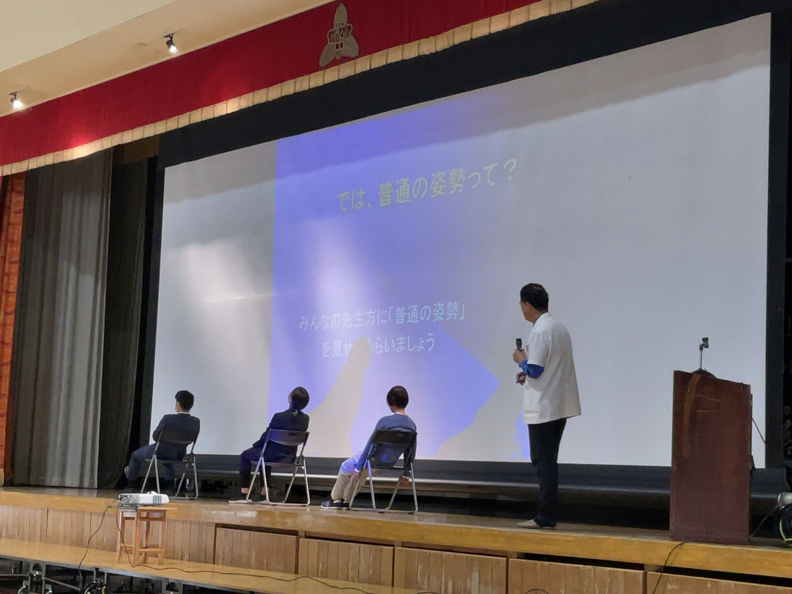 今日は、参観日に合わせて、学校保健委員会の講演会がありました。 下伊那日赤の後藤敏先生をお迎えして、お話をお聞きしました。 若い人にありがちなのは、①猫背、②反り腰、③顎出し(ストレートネック)だそう。 これは、発育障害や腰痛、肩こり、内臓の障害や自己肯定感の低下につながるそうです。 全校のみんなで、自分の姿勢は大丈夫か、身体を動かしてチェックをしました。 スマホは、悪い姿勢の条件が全部そろうんだって。だらだら使わないルールを決めよう。 とってもたのしく、有意義な1時間でした。 後藤先生、有り難うございました^^