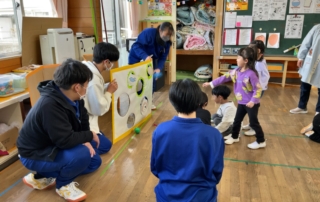 3年生の家庭科の授業の一環で、町内の保育園のご協力の下、保育園訪問を行いました。 幼児とのよりよい関わり方の工夫について学ぶ学習です。 この日のために、園児を思いながらおもちゃを作成したり、絵本を選んだりしてきました。 未満児さんに、「ぼくたちとあそんでくれるの?やったぁ!」と言われた中学生は、おもわず、にんまり^^ でも、実際に園児を目の前にすると、どう声がけをしたらよいか戸惑う中学生。 一緒に遊ぶ中でお互いに慣れ、お別れの時間には、名残惜しくなりました。 名子中央保育園様、双葉保育園様、中学生を受け入れてくださり、ありがとうございました。